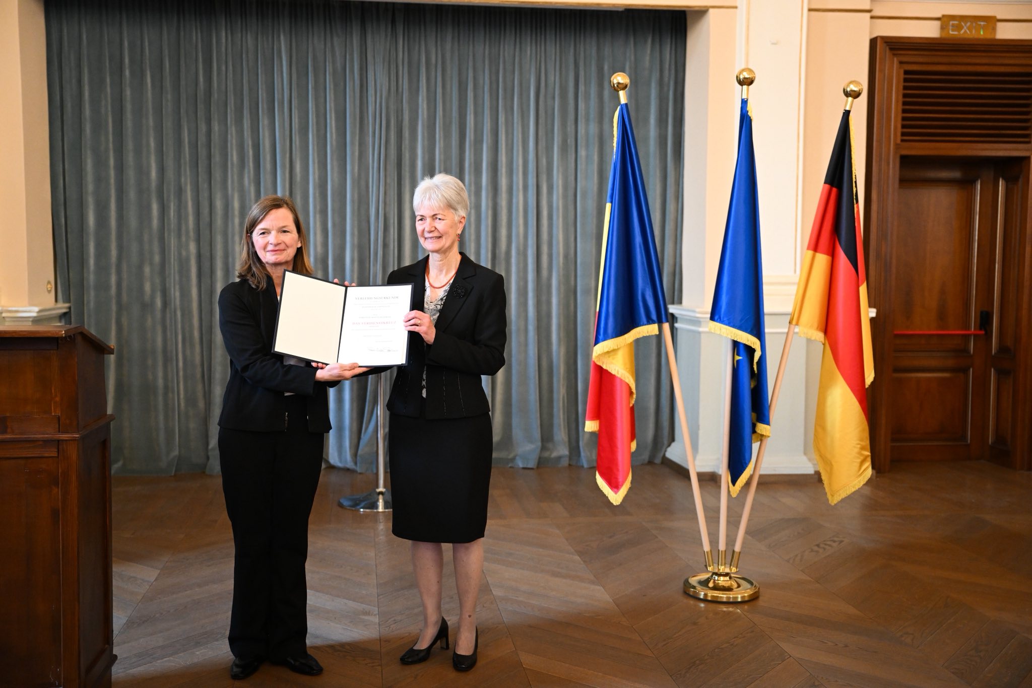 În discursul său, doamna Oeser a subliniat: „Întreaga dumneavoastră carieră profesională și munca de voluntariat depusă timp de peste 25 de ani vi le-ați dedicat, cu asupra de măsură, limbii germane și dezvoltării sistemului de învățământ în limba germană din România. Prin implicarea dumneavoastră profesională și personală, ați contribuit în mod semnificativ la menținerea și cultivarea limbii, culturii și sentimentului de apartenență al comunității germane la orașul și județul Sibiu, astfel încât minoritatea germană să rămână în continuare un element central al relațiilor noastre bilaterale, consolidându-și pe mai departe rolul important de punte de legătură.”